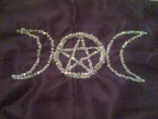 pailetes cucite in modo sparso, in ordine di: terra, fuoco, aria, acqua.