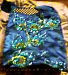 scritta, in basso, con pailettes blu chiaro, "Melek"